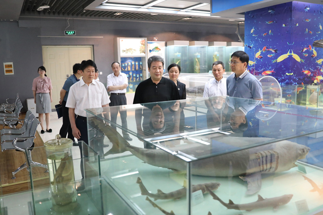 会前,校领导陪同麻建国一行先后参观了海洋馆、海洋工程技术研究中心、海洋智能装备研究院和海洋生命与水产学院,介绍了我校涉海科研平台的建设运行情况,涉海专业、学科及科研项目开展情况,让来宾对我校海洋特色及海洋大学创建工作有了深入了解。