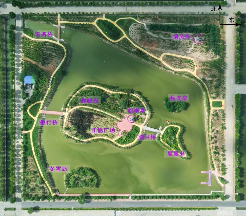 根据发布的公告,整个景观定名为“静思湖”,湖心广场定名为“正德广场”,景区内的两座亭分别定名为“清风亭”“桃李亭”,三座桥分别定名为“映月桥”“敏行桥”“未名桥”,四座岛分别定名为“春晓岛”“夏露岛”“秋实岛”“冬雪岛”。从整体上看,新命名的景观名称简洁、大气、清新、雅致,既有鲜明的学校特色和深厚的文化底蕴,又突出景观返璞归真的自然状态及学校崇尚和谐的人文追求。