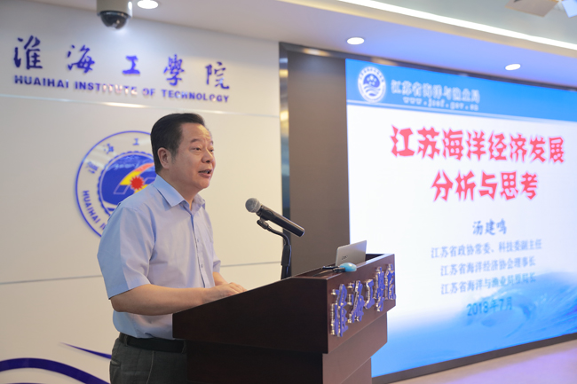 江苏省政协常委、科技委副主任、江苏省海洋经济协会理事长汤建鸣作报告