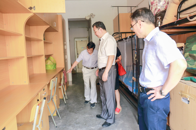校领导查看通灌校区学生宿舍