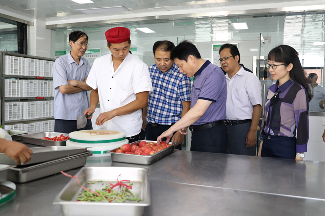 校领导查看宋跳校区学生食堂操作间