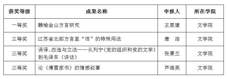 近日,江苏省教育厅公布《关于2018年江苏省教育教学与研究成果奖(研究类)获奖项目名单的通知》(苏教人〔2018〕10号),我校共获得高校哲学社会科学研究类一等奖1项、三等奖3项,高校科学技术研究类二等奖2项、三等奖3项,教育研究类三等奖1项。据悉,江苏省教育科学研究成果奖每两年评审1次,分高校科学技术研究类、高校哲学社会科学研究类、教育研究类,2018年全省共有699项优秀成果获奖。