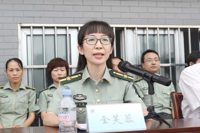 军训团团长、副校长金芙蓉作军训总结讲话。她代表学校向承训部队和教官表示感谢,对获奖单位和个人表示祝贺,对支持军训工作的各级领导、各职能部门表示衷心感谢。金芙蓉勉励同学们要把在军训期间养成的良好习惯和锤炼的意志品质,带到今后的学习生活中,勤奋刻苦,文明守纪,树立远大理想,励志报效祖国,用自己四年的努力,成为国家需要的栋梁之才。