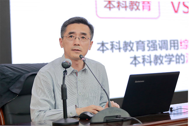 报告会上,周毅围绕指标体系设计的教育理念和指导思想,结合苏州大学本科教育改革发展的实际,从构建适合本校定位的教学体系、推动专业建设的加减乘除、深化人才培养模式改革、创新教学管理制度和完善教学质量报告体系五个方面介绍了苏州大学建设一流本科教育的做法和经验,探讨了专业动态调整和结构优化、通识教育和专业教育及创新创业教育的关系、提高学业挑战度、跨学科培养和多维协同育人等问题。作为江苏省普通高等学校本科专业评估指标体系设计的首席专家,周毅以我校计算机类专业为例,就如何把握指标内涵和做好迎评促建工作作了深入浅出的讲解,并现场回答了部分专业负责人的提问。