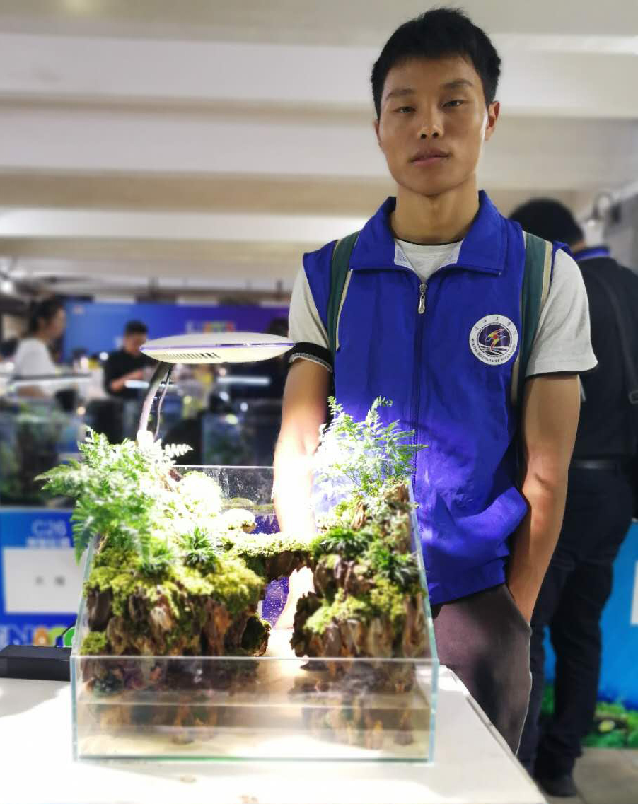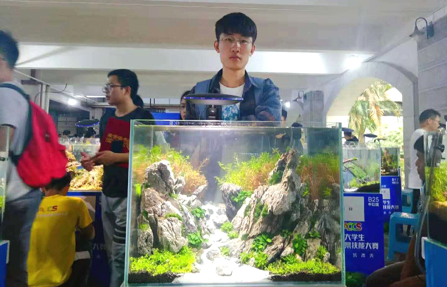 水产161杜鑫鑫的参赛作品“山中奇缘”获得水陆缸组一等奖