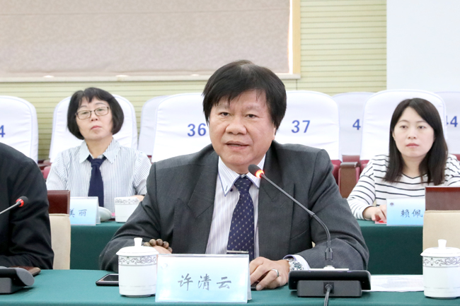 许清云对我校热情、周到的接待表示感谢。他着重介绍了台湾正修科技大学超微量检测中心和艺术修复中心的相关情况。许清云表示,希望通过此次参观访问,进一步加强两校之间的交流合作,增进两校间的友谊。