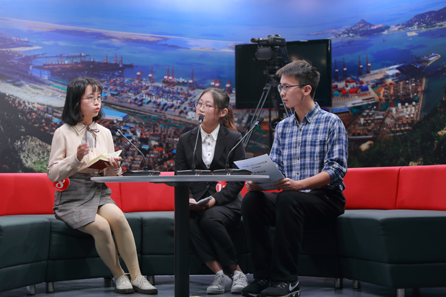新闻评述环节考验选手语言表达能力和思维的逻辑性、敏锐度,选手三人一组,围绕“大学生在校创业的优势和劣势”、暑期游学、重庆公交坠江事件等社会热点话题进行现场评述,表达个人观点。选手们滔滔不绝,将新闻事件分析得鞭辟入里,现场气氛十分热烈。