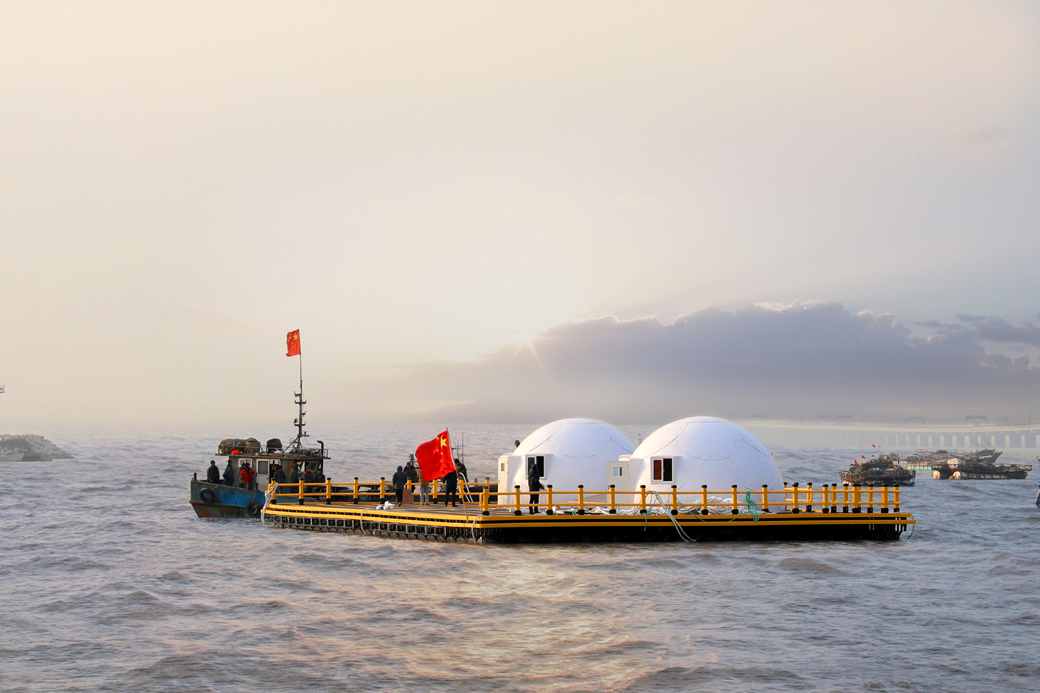 2018年2月,黄海近岸海域生态系统响应试验平台顺利下水并投入使用;5月初,该平台上的海上试验站及配套的测试分析综合实验室也正式完工,继而实现了海上原位研究的业务化运行。作为我国目前较为先进的原位研究海洋生态系统与环境变化的试验平台,它既可以对海洋微生物、浮游动植物、大型海藻及鱼、虾、贝类等进行生态系统原位研究,又可以对海区环境进行实时监测,提供有效的监测数据,促进海水养殖活动的可持续发展。