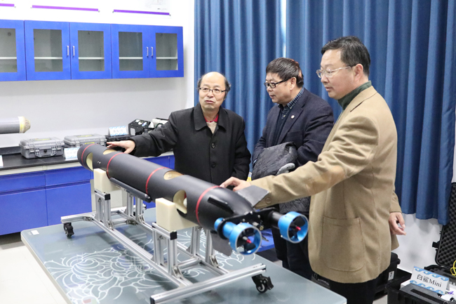 座谈会后,孙松一行饶有兴趣地参观了我校海洋经济与文化研究中心、海洋工程技术研究中心,实地了解我校在海洋经济与文化、海洋工程技术研究等方面的最新进展。