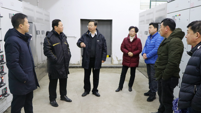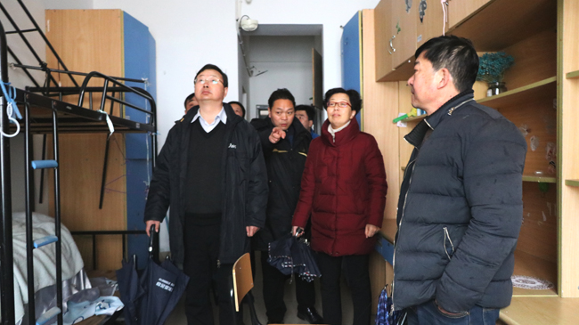 1月30日下午,校长宁晓明、副校长李梅英在后勤管理处及监理单位有关人员陪同下,先后来到苍梧校区五号变电所、男女学生公寓施工现场,视察电力增容工作。