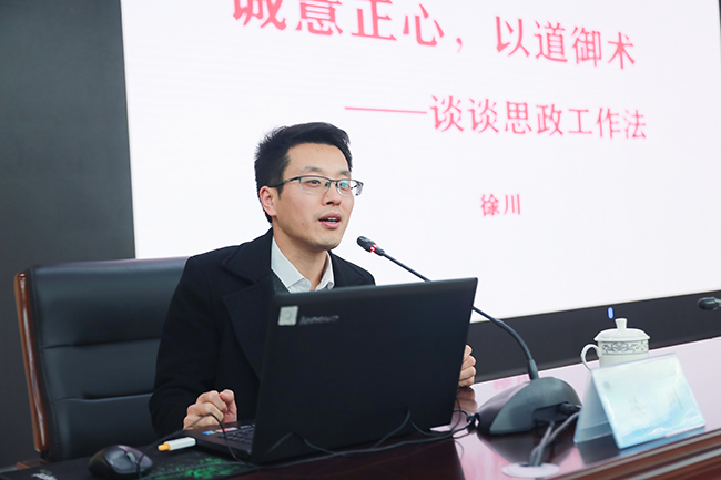第一场报告会,徐川为我校从事学生工作及思想政治工作的老师们作了题为《诚意正心,以道御术,谈谈思政工作法》的报告。他从自身经历谈起,结合目前思政工作存在的问题和现状,指出工作中存在的“三个误区”,提出思政工作法“是方法不是事迹,是内容不是形式,是路径不是结论”的正解。他认为,思政工作者应该以“三个真心”为“道”,把对国家的真心、组织的真心、青年的真心融入到思政工作当中去。他提出,思政工作要以六个方面为“术”。一是换位思考,把自己摆进去;二是因材施教,一把钥匙开一把锁;三是回应关切,解决青年实际问题;四是深入浅出,用故事讲道理;五是拓展途径,青年在哪里,工作就在哪里;六是汇聚力量,把“我”变成“我们”。