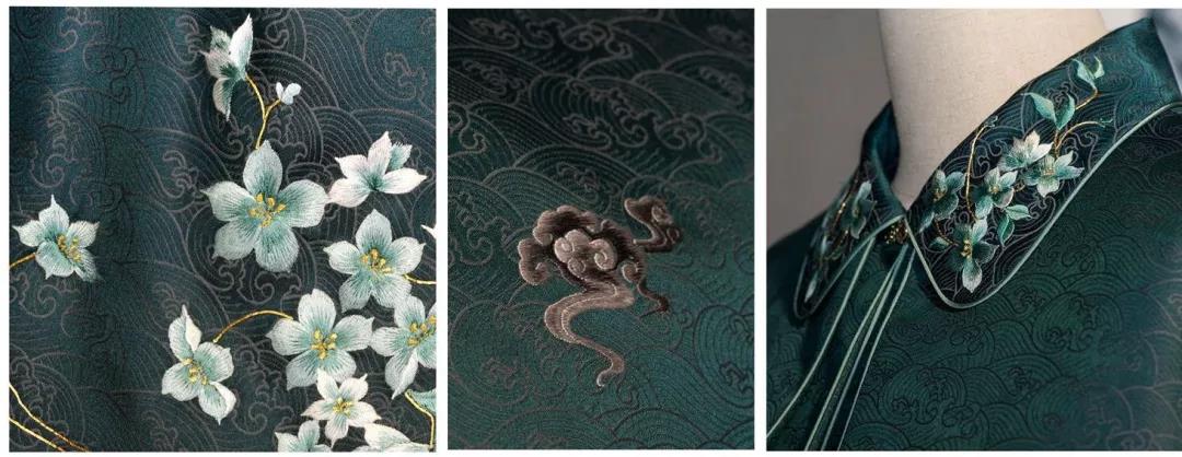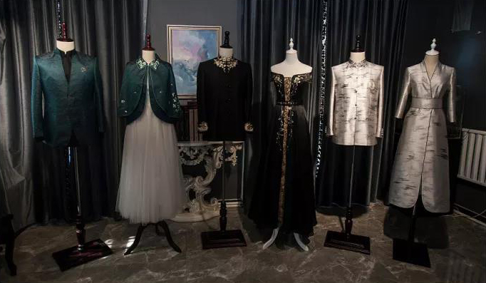“宋锦这种面料最能体现中国元素”,谈到作品选材,王栋说,“宋锦色泽华丽,图案精致,2009被列入了世界非物质文化遗产,2014年又在北京APEC晚宴中亮相”,面料特有的水纹、云纹特别适合展现连云港独有的云台风光。