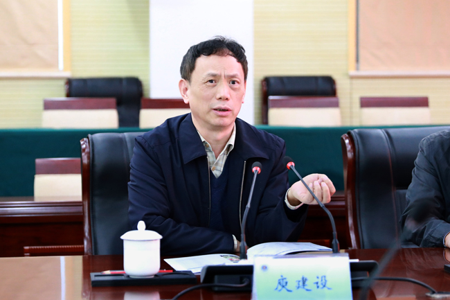 校党委书记王自力代表学校对庾建设一行的到来表示热烈欢迎。宾主双方共同观看学校专题片《扬帆起航正当时》后,校长宁晓明向来宾补充介绍了我校的办学历史、人才培养、学科建设、校区分布、办学特色、发展规划等方面的情况。