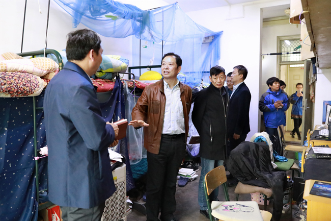 会后,参会人员分成两组,分别对苍梧校区学生宿舍卫生环境、师生创文应知应会知识进行了现场抽查。