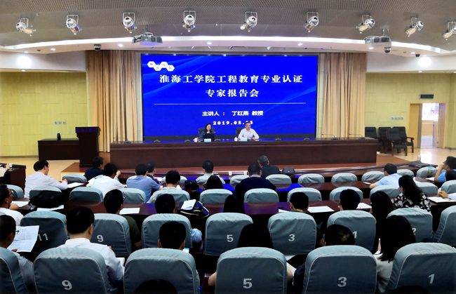 5月23日下午,我校在会议中心黄海厅举办工程教育专业认证专家报告会,邀请淮阴工学院党委常委、科技处处长、原机械与材料学院院长丁红燕教授作专题辅导报告。报告会由副校长严云洋主持。教务处、设备与实验室管理处、教学质量管理处负责人,各工科专业所在二级学院院领导、系正副主任、专业负责人和教务秘书等近百人聆听了报告。