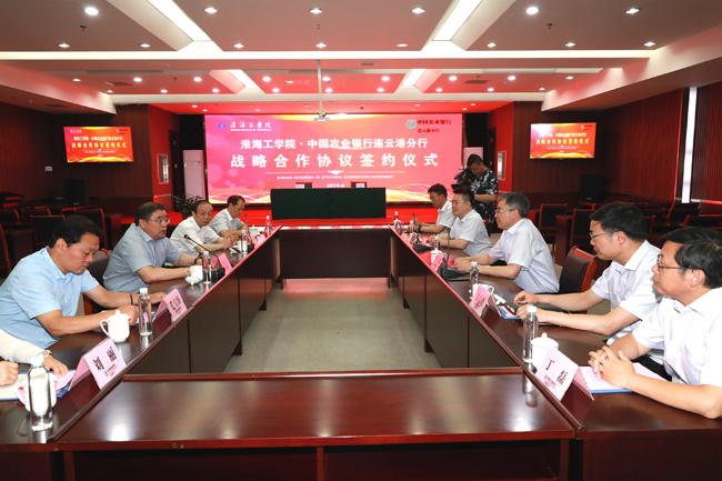 6月14日下午,我校与中国农业银行连云港分行在市农行三楼会议室签署《银校战略合作协议》。校党委书记王自力、副校长舒小平,中国农业银行连云港分行行长葛儒、副行长吕茂春,以及双方有关部门负责人出席签约仪式。