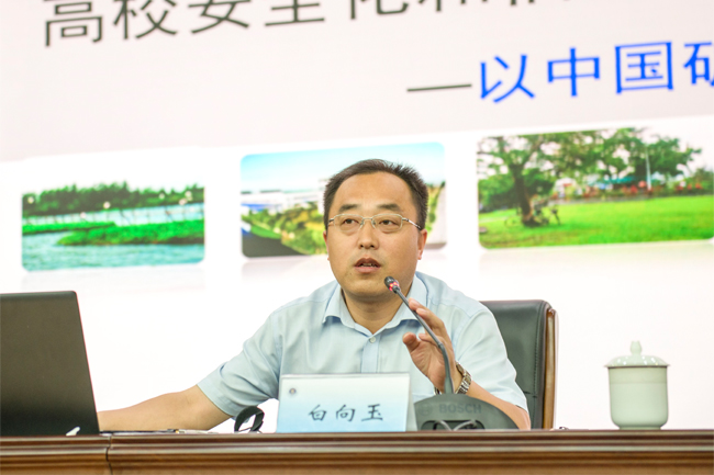 严云洋对白向玉为我校师生作的精彩报告表示感谢。同时,他也对我校实验室安全管理工作提出了四点要求:第一,实验室安全管理工作是学校安全稳定工作的重要组成部分,要深刻认识其重要性和特殊性,各单位要切实增强实验室安全意识和管理规范性,推进落实安全管理措施和责任;第二,由于学科门类不同,实验室安全管理不是简单的、面上工作,需要多方联动、齐抓共管,学校将进一步建立和完善联动、长效的管理机制,推进管理制度、管理体系、管理队伍完善,强化规范和信息化管理;第三,要进一步强化精细化管理,对各类实验室、各类人员,推进实施分类分级管理,落实实验室安全“全过程”“全要素”“全方位”管理;第四,要进一步强化宣传,营造实验室安全工作的良好氛围,健全实验室准入制度,加强培训,完善宣传方式、加大宣传力度,切实提高全体人员的安全认知与意识。