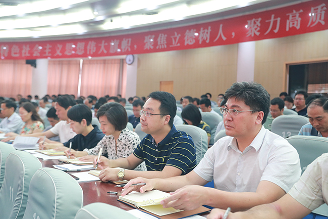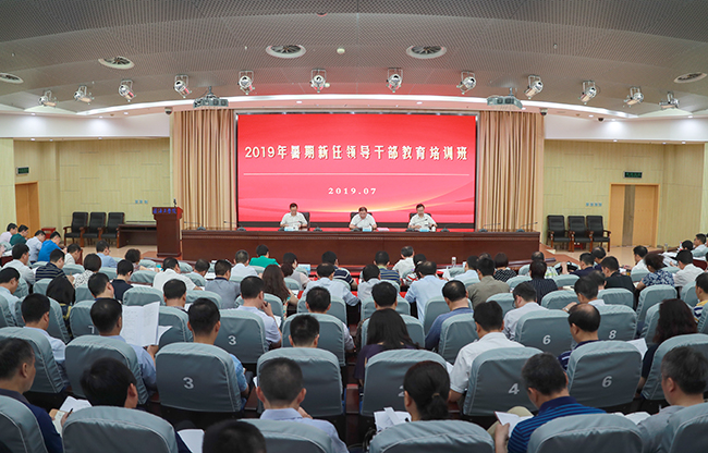 7月4日上午,学校党委在会议中心黄海厅启动2019年暑期新任领导干部教育培训工作。校党委书记王自力作开班动员讲话,校长宁晓明作专题报告。校党委副书记史顺良主持上午的开班动员和报告会。全体在连校领导、中层干部和正科职干部参加了上午的培训。