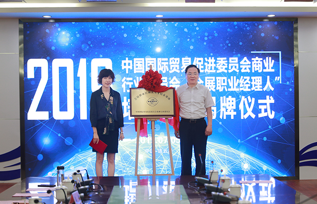 中国国际贸易促进委员会商业行业委员会副秘书长王曦与我校商学院院长宣昌勇共同为人才培养基地揭牌,王曦还向宣昌勇颁发了“会展职业经理人(CEPM)人才培养基地”授权证书。