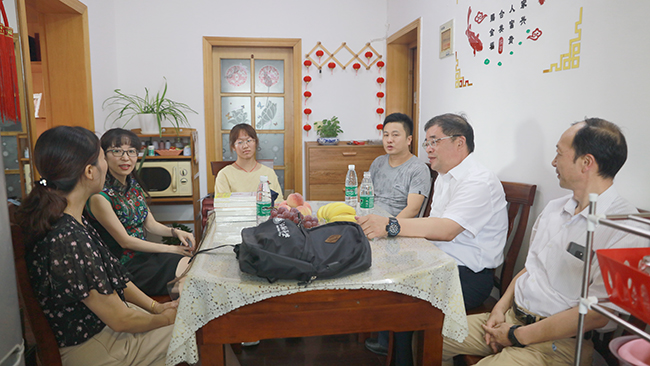 校领导与王馨怡一家人拉家常