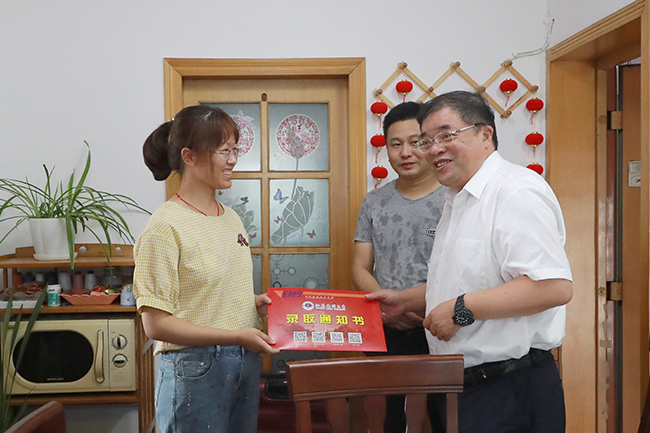 校党委书记王自力送出我校今年省内首封录取通知书