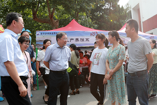 “你老家是哪里的?”“初来这边还适应吗?”“欢迎你们来到江苏海大,感谢你们对我校的信任!”在通灌校区,校领导热情地与新生家长们握手、亲切交谈,了解他们普遍关注的问题,并勉励新生来到大学后尽快转变角色,适应大学生活,提高自身学习生活能力,全面发展完善自我。在海洋生命与水产学院新生报到处,校领导仔细查看该院做的“考研光荣榜”,连连称赞“做得好!”。今年,艺术学院给2019级新生布置了“新生作业”,在该学院迎新点,这些绘画作品被展示了出来,引起了王自力的兴趣,“推进本科教育回归常识,引导学生求真学问、练真本领,对大学新生进行合理‘增负’,这样的尝试很有意义。”