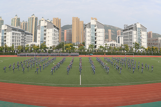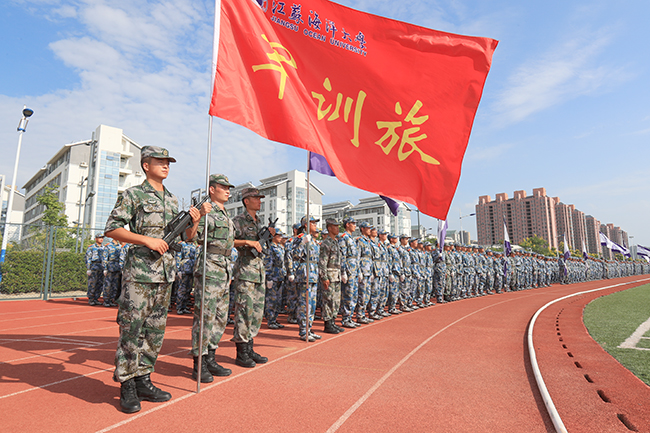 9月12日下午,我校2019级新生军训成果汇报暨总结表彰大会在苍梧校区体育场举行。校领导宁晓明、舒小平、许兴友、李梅英,连云港警备区副司令员徐豪杰大校、海州区人民武装部政委程福明上校、中国人民解放军31609部队海防一营教导员王志少校出席大会,2019级新生军训工作领导小组成员参加大会,大会由副校长舒小平主持。