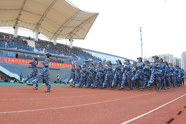 徐豪杰大校讲话。他对我校2019级新生军训工作给予了充分肯定,并对军训学员提出三点希望:做一个有责任的人、做一个会学习的人、做一个有血性的人。同时,他也祝愿江苏海洋大学勇立潮头,成为省内一流、全国知名、世界瞩目的名牌大学。