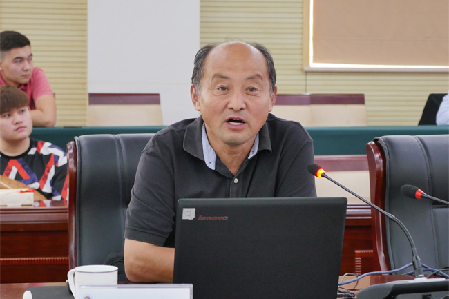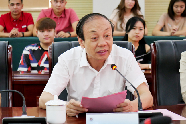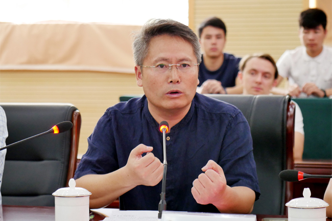文学院院长吴明忠作为教师代表发言。吴明忠为留学生们送上三句话:希望留学生们既要热爱自己的祖国,也要把世界放到自己心中;既要在课堂上认真学习书本知识,也要走出校门;既要做不同文化的输入者,也要做不同文化的输出者,做中外文化交流的使者。