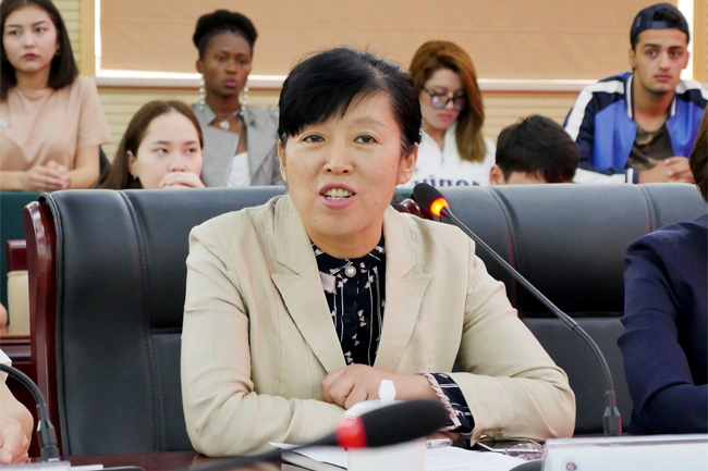 王习娟在开学典礼上讲话,她指出,近年来我市高等教育坚持内涵建设和特色发展,积极推进国际交流合作,促进与“一带一路”沿线国家教育互联合作,推介打造“丝路东方留学生连云港”品牌,取得较好成效,留学生招生呈快速增长态势,培养质量和层次不断提升,学习生活日益丰富。王习娟希望留学生们热爱连云港,热爱江苏海洋大学,勤勉学习,广交朋友。