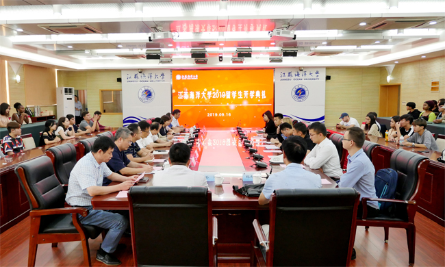9月16日上午,江苏海洋大学2019留学生开学典礼暨开学第一课在校会议中心东海厅举行。副校长舒小平出席活动,连云港市教育局高教与职教处处长王习娟,我校教务处、学生处、团委、文学院、商学院、测绘与海洋信息学院、法律与公共管理学院、药学院、计算机工程学院相关负责人,以及留学生班主任、2019级留学生新生和部分老生代表参加了典礼。开学典礼由国际交流与合作处处长、国际学院院长韩小杰主持。