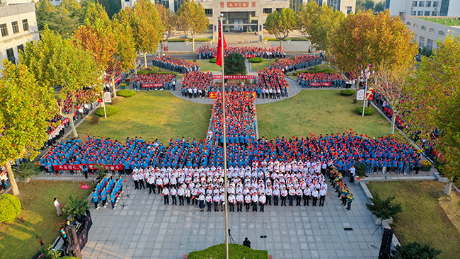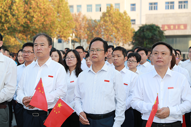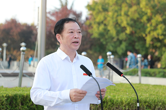 王自力在国旗下讲话。他指出,70年砥砺奋斗,我们的国家发生了天翻地覆的变化。无论是在中华民族历史上,还是在世界历史上,这都是一部感天动地的奋斗史诗。回首70年的艰辛探索,重温70年的光辉岁月,历数70年的辉煌成就,我们无比振奋,倍感自豪。