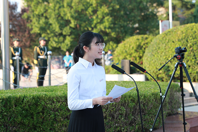 学生代表、省三好学生、土木与港海工程学院金歌同学发言。她表示,青年学生是实现中华民族伟大复兴中国梦的践行者和主力军。肩负这一重担,应当从此时做起、从自身做起,努力勤学科学文化知识,坚定理想信念,提升素质能力,把报国之志落实到具体行动上,为祖国的繁荣昌盛贡献青春力量。