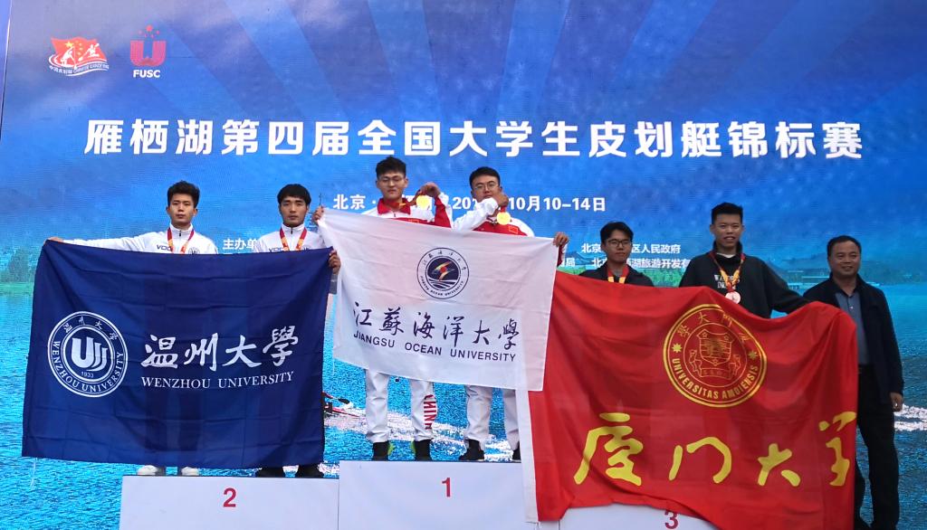 10月12日至13日,第四届全国大学生皮划艇锦标赛在北京怀柔区雁栖湖上举行。我校皮划艇队发挥出色,在阳光组男子双人皮艇200米和500米直道竞速二项比赛中,均获得第一名,勇夺二块金牌。