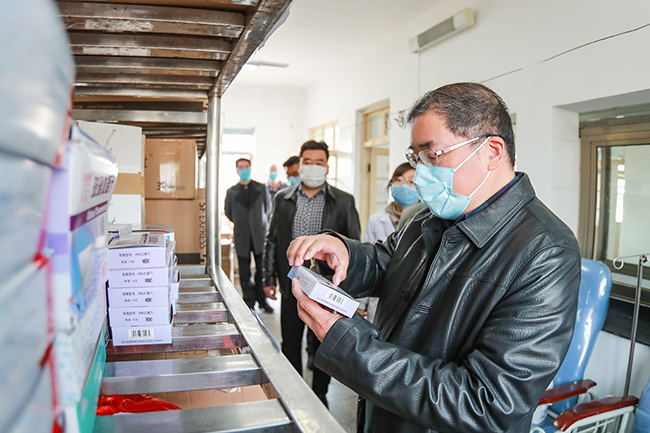 在卫生科,校领导详细询问了体温计、一次性口罩、防护服、消毒液等防疫物资准备情况,要求防疫物资准备工作思路要靠前,不仅要物资到位,还要做好物资的分配使用方案、突发情况造成的物资短缺应急预案。