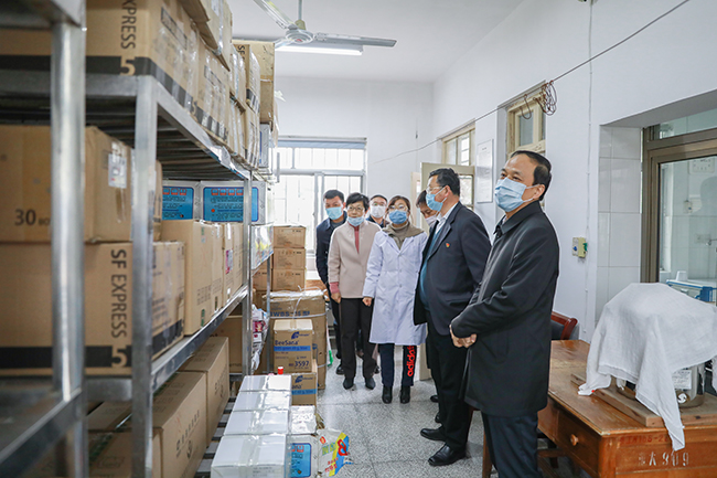 黄远征副市长一行重点查看了我校防控物资储备仓库、学生食堂、医学隔离观察场所。在检查过程中,黄远征对我校疫情防控和开学准备工作表示满意。随后,在我校会议中心召开了学校疫情防控和开学准备工作座谈会,黄远征副市长一行认真听取了我校疫情防控和开学准备工作情况汇报,并就学校进一步加强应急处置、防控物资保障、校园安全管理、学生返校、涉外防控、师生心理疏导等方面的工作给予指导。黄远征充分肯定了学校疫情防控前期工作和开学准备工作,他指出,学校是人员密集场所,师生众多,疫情防控责任大、任务重,防控工作要做到无纰漏,确保万无一失。