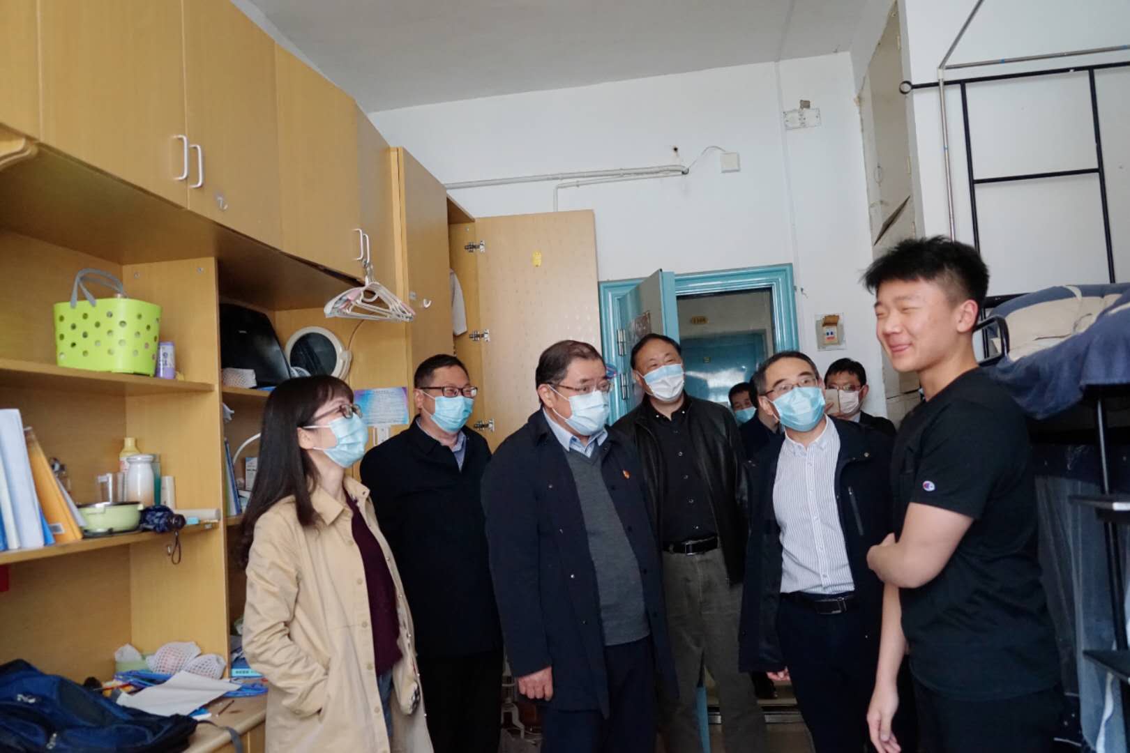 王自力一行在报到现场和学生公寓与返校的同学们亲切交流,详细询问了学生的身体状况、口罩等防疫物资准备情况,了解同学们返回学校后学习和生活上的需求和对学校工作的建议,叮嘱同学们在校期间做好个人防护,注意身体健康,保持良好的学习生活规律,提高自身免疫力。要求各校区开学后要继续严格执行校园封闭管理,确保校园安全稳定。