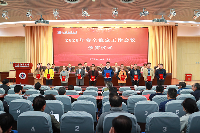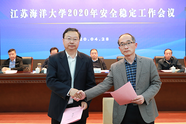4月28日下午,我校在会议中心黄海厅召开2020年安全稳定工作会议。会议深入学习习近平总书记关于安全生产的重要论述和重要讲话精神,认真贯彻李克强总理重要批示,落实全国安全生产电视电话会议部署,总结我校2019年安全稳定工作,布置2020年安全稳定重点工作。全体校领导出席,全体中层干部参会,校党委副书记史顺良主持会议。