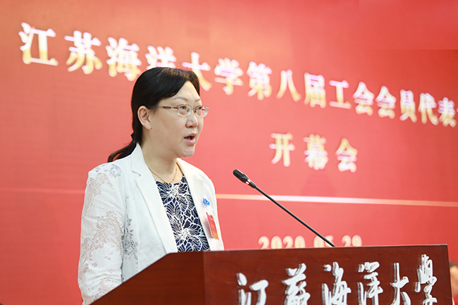 校工会主席万洁代表第七届工会委员会作了题为《围绕中心服务大局恪守职能锐意进取团结广大教职工为推进学校高质量发展而努力奋斗》的工会工作报告。报告全面回顾了过去四年工会工作:在校党委和上级工会的坚强领导下,在学校行政的大力支持和广大教职工的共同努力下,各级工会组织紧紧围绕学校党政中心工作,坚持服务大局,认真履行职能,积极推进学校民主管理,竭诚服务职工,努力为广大教职工做好事、办实事,较好地完成了各项工作任务,为学校事业发展做出了积极贡献。近年来,我校先后荣获江苏省五一劳动奖状、江苏省民主管理先进单位、江苏省模范职工之家、连云港市职代会建设示范单位等称号。