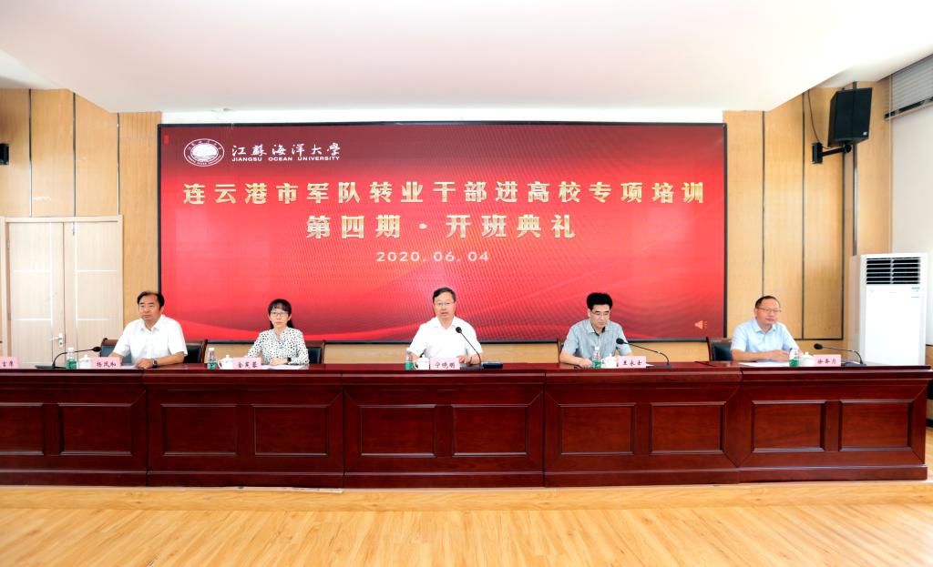6月4日上午,连云港市第四期军转干部进高校专项培训开班典礼在我校通灌校区诚意楼举行。校长宁晓明,副校长金芙蓉,市退役军人事务局党组书记、局长王永士,市委组织部四级调研员综合干部处处长徐奔月以及市公安局、市财政局、市退役军人事务局的相关人员,培训老师、学员共120余人参加了典礼仪式。开班典礼由继续教育学院院长杨凤和主持。