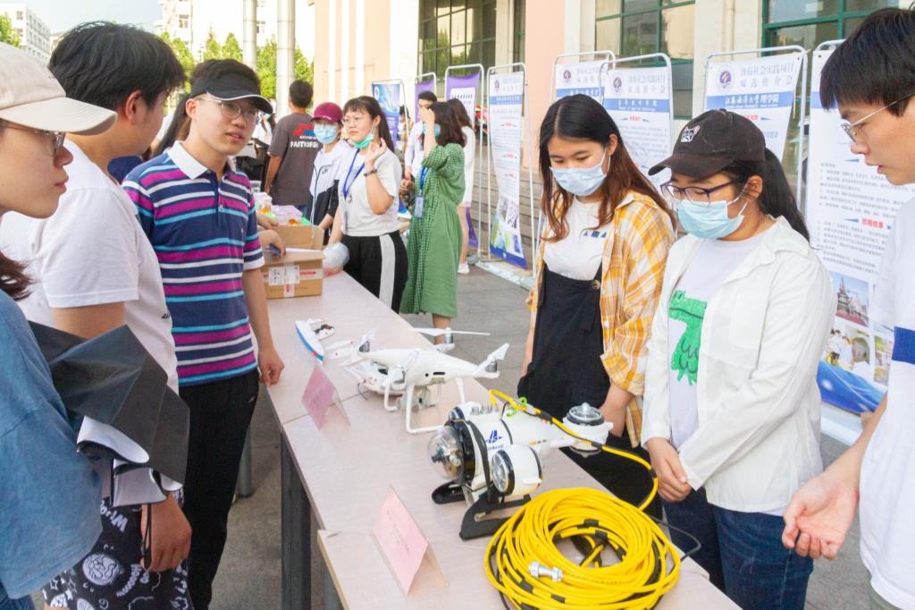 这是我校第五届海洋科技文化周开幕现场一角。为了引导广大学生了解海洋、热爱海洋,校团委组织各社团开展了不同形式的海洋文化宣教活动、科技作品展览活动。