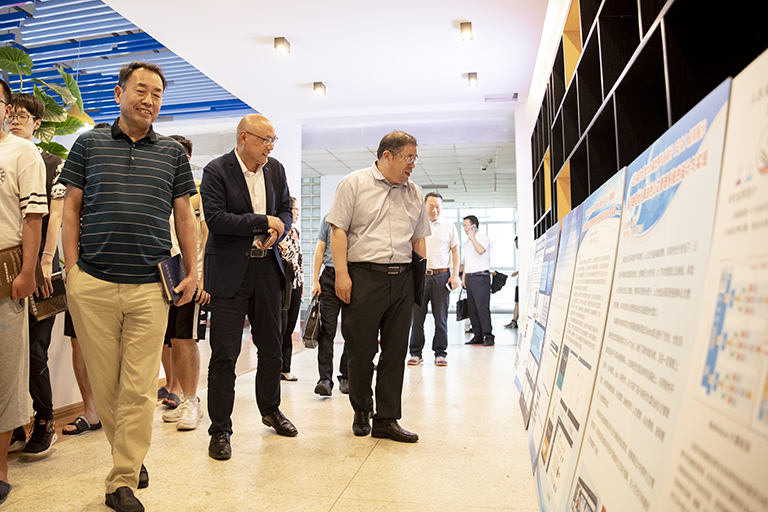 王自力在参观了成果展示后,充分肯定了2020届本科毕业实习与设计(论文)工作取得的成绩,他对各单位面对疫情影响周密安排和指导教师的辛勤付出表示感谢,希望全校师生以高度的责任感和使命感,锐意进取,不断深化教育教学改革,结合我校海洋大学的学科特色和人才培养优势,努力为区域经济发展贡献力量!