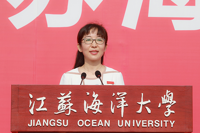 优秀毕业生、已考取江苏省名校优生连云港地区选调生、电子工程学院刘蕊同学的父亲刘默昌先生,作为毕业生家长代表发言,感谢江苏海洋大学对女儿的精心教育培养。