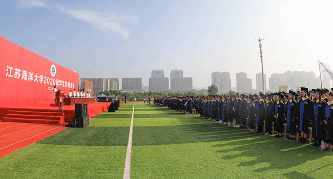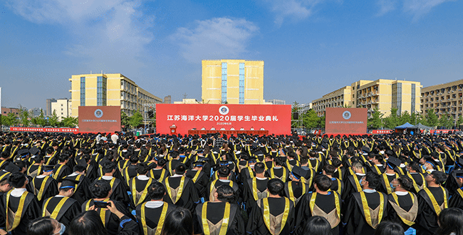 6月19日清晨,天朗气清,惠风和畅。对于即将毕业的150名研究生和5124名本科生而言,这是个值得铭记的日子。经过几代师生的接续奋斗,学校于去年成功更名为江苏海洋大学,今年2020届毕业生是江苏海洋大学的第一届毕业生,为此学校举办了隆重的露天毕业典礼,并在线上同步直播,未返校毕业生在“云端”同步参加毕业典礼。