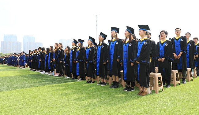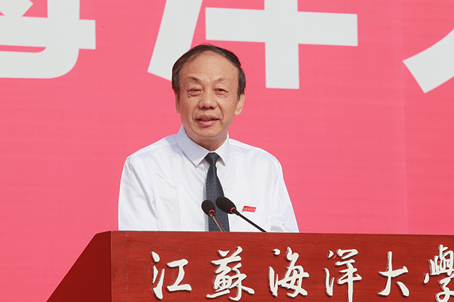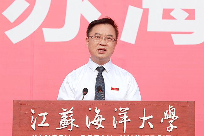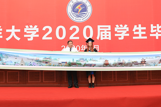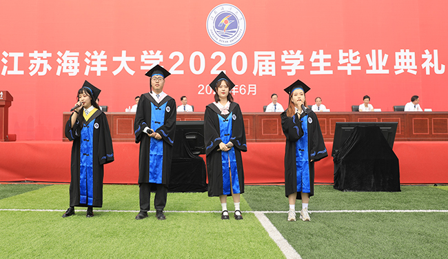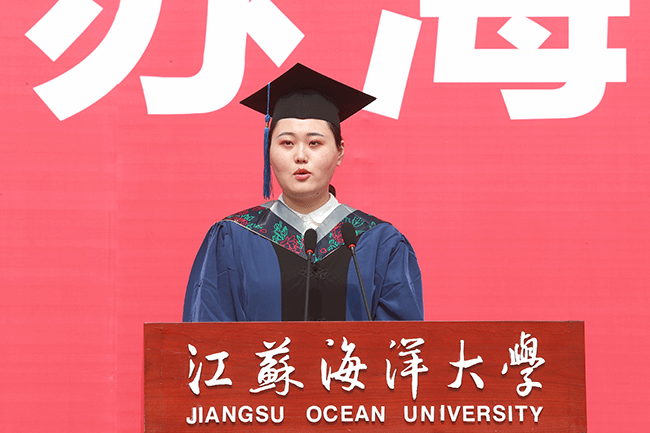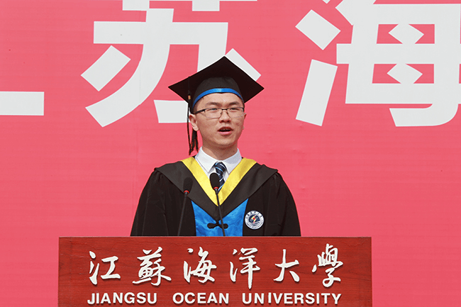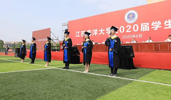 在毕业典礼上,校长宁晓明连用四个“想不到”对毕业生送上祝福:“你们可能想不到,在毕业之前,还能赶上宿舍装空调,终于实现了夏天睡觉不流汗、冬天睡觉不发抖的愿望;你们可能想不到,美丽的静思湖这么快就翩然而至,大家从此有了一个学习休闲的好去处,岸边的垂柳倾听着同学们朗朗读书声,湖中的黑天鹅也见证了许多恋人的爱情故事;你们可能想不到,功能完备、设施先进的第四教学区拔地而起,宽阔的大草坪拓展了你们释放情绪的空间,大气的教学楼激发了你们刻苦读书的热情;你们可能想不到,自己会变得这么优秀。”展望未来,宁晓明勉励毕业生:“作为江苏海洋大学第一届毕业生,‘一’这个字注定会成为你们最显眼的标签。因此,我希望2020届毕业生从‘一’开始做起,努力去遇见更好的自己。”