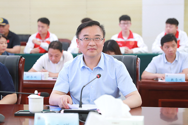 宾主双方观看了学校形象宣传片后,校长宁晓明致欢迎辞。宁晓明简要介绍了学校办学历史、办学特色,以及学校体育教学改革的主要做法和成果。他表示,学校与省体育局将本着“优势互补、资源共享、互惠双赢、共同发展”的原则,在体育竞技、体育科研、青少年后备人才培养、水上运动赛事承办和推广、运动员文化教育等方面进行合作,共同打造江苏省帆船和皮划艇高水平运动队。学校将充分发挥在学科、人才、科研、场馆设施和社会服务等方面的资源优势,全力做好运动队各项管理和服务工作,为建设体育强省贡献“海大”力量。
