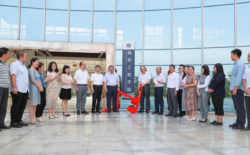 校党委书记王自力、副校长舒小平共同为海洋工程学院揭牌