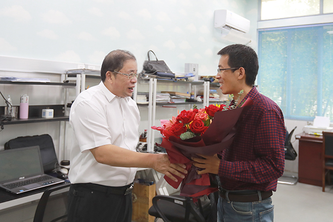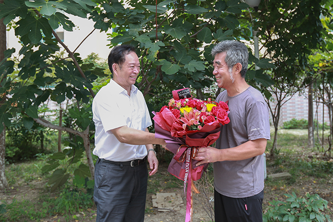 今天是9月10日,第36个教师节。上午,校领导王自力、宁晓明、史顺良分别来到文西芹、冯志华、李玉、王恩建、苏成兄、董自波、黄治东、钱保华8位老师办公室实验室或家中,向他们送上鲜花和慰问金,并向他们和全校教师致以节日的问候和真挚的祝福。校党委常委、组织部部长纪延光陪同。