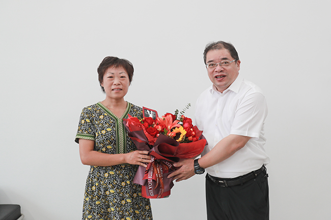 “教师节快乐!”在机械工程学院,王自力看望了文西芹教授,并关切地询问,“教学任务重不重?”“产学研合作方面还有哪些社会兼职工作?”并希望文教授带领学院年轻教师继续发挥专业优势,积极搭建平台,整合资源,在推动校企深度合作方面建桥搭路,创造更好的业绩。