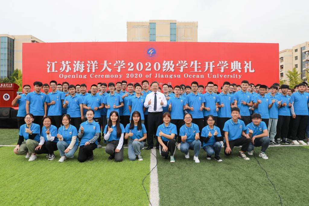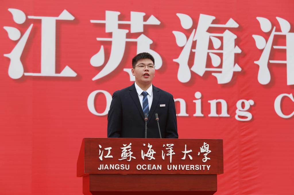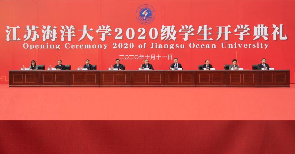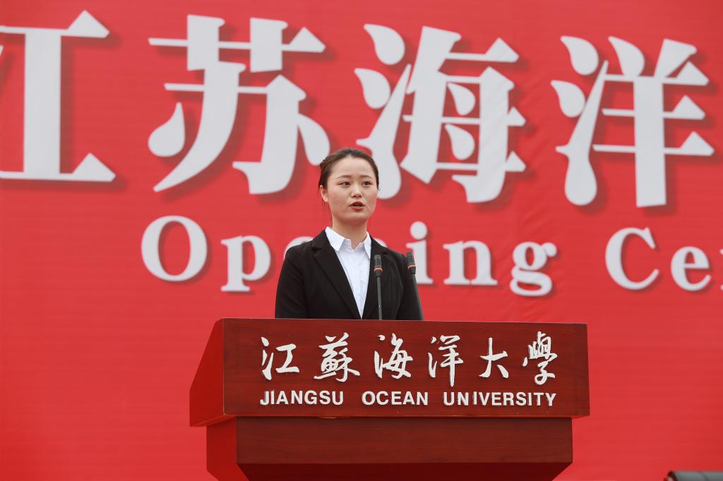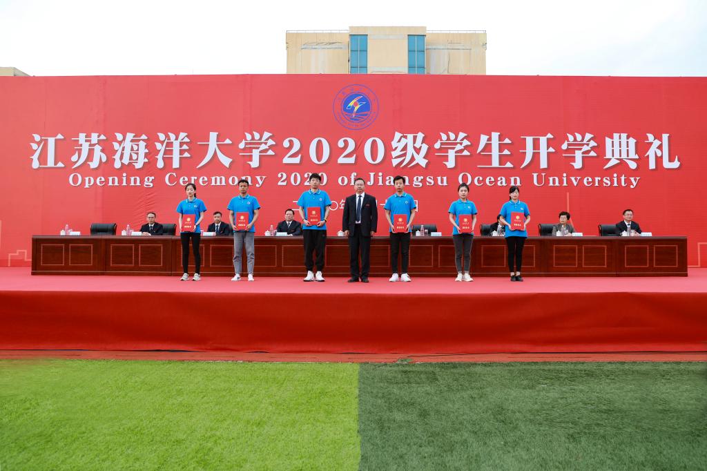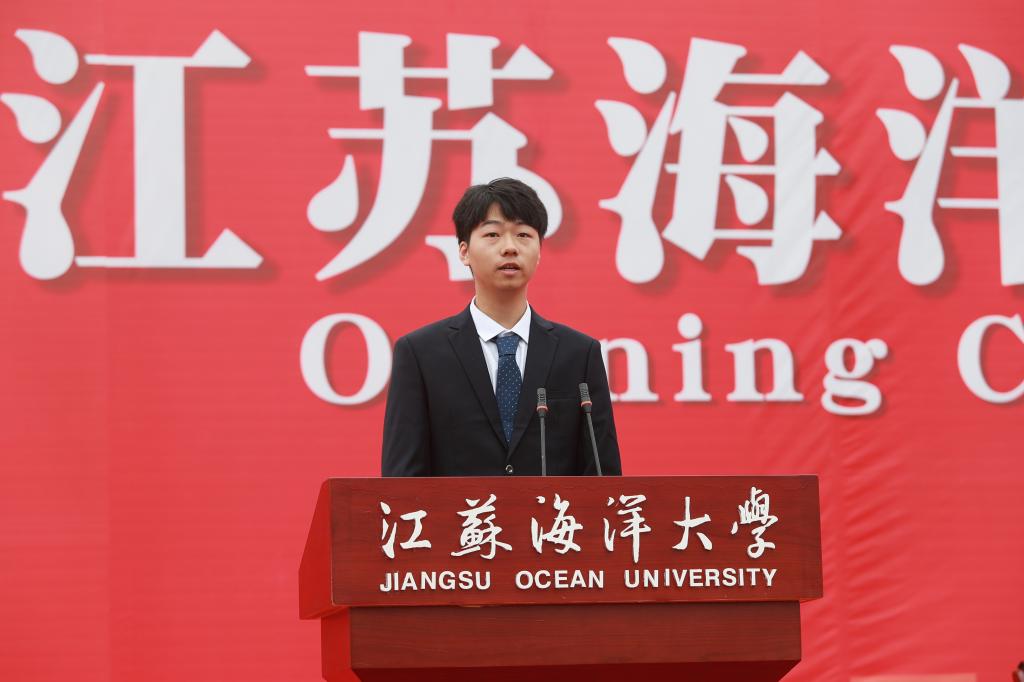 开学典礼以全场师生共同齐唱江苏海洋大学校歌《蔚蓝的信仰》结尾。